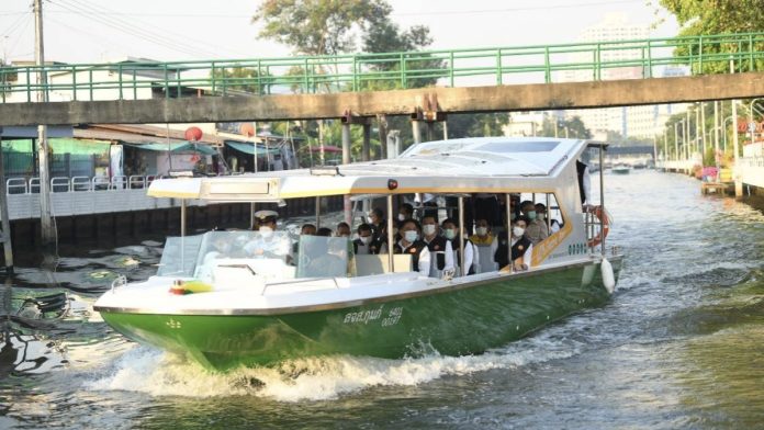 Bangkok Metropolitan Administration (BMA) by Traffic and Transportation Department have launched electric passenger boat services in Saen Saep Canal, starting from Wat Si Bun Rueang Pier until Min Buri District Office Pier. This is an extended route that enables people to conveniently connect to Min Buri areas.  The electric boat services will generate fewer waves, operate noiselessly, emit no pollutants into canals, and run without fuel combustion, which is the cause of global warming. This is the second water commuting route after the passenger boat route on Phadung Krung Kasem Canal. BMA has operated its electric passenger boat services to provide the public with multiple transportation options to choose from. It is also the promotion of the public transportation system that rapidly connects to other types of transportation.  This means of transport will enhance the life quality of the people in Bangkok, and is truly an environmentally-friendly public transportation system.