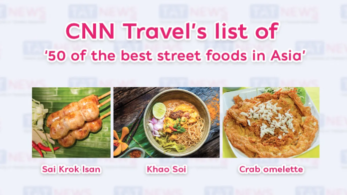 The Tourism Authority of Thailand (TAT) is pleased to report that three distinctive and delicious Thai dishes have been included in CNN Travel’s list of 50 of the best street foods in Asia.