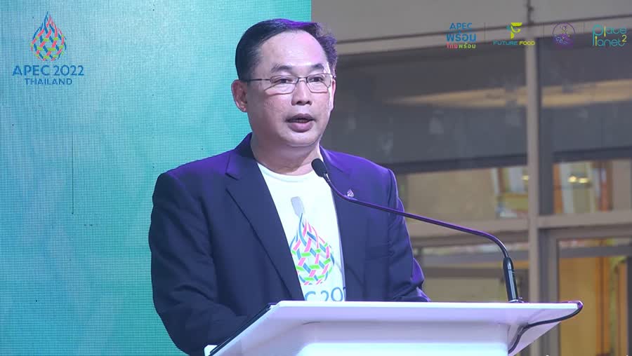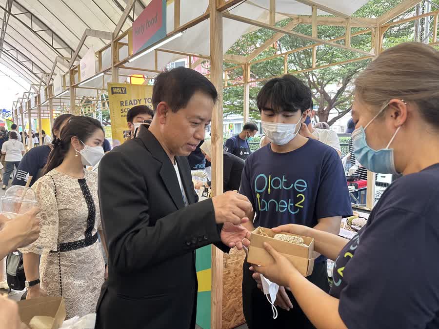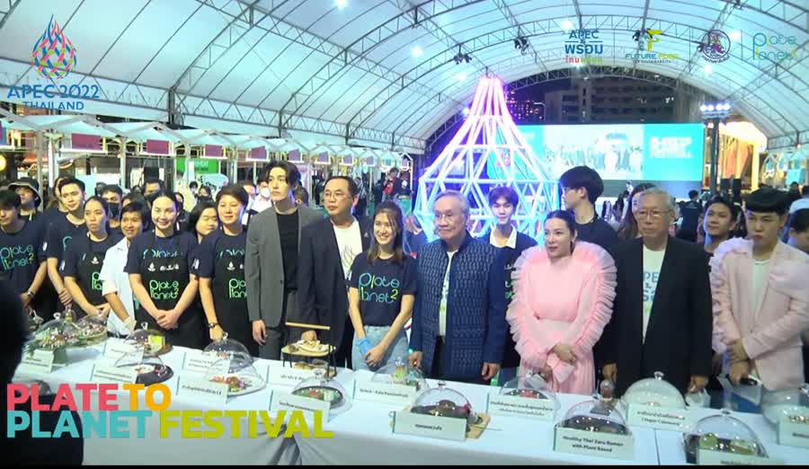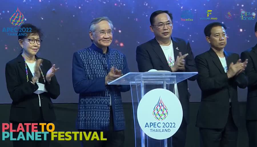 H.E. Don Pramudwinai, Deputy Prime Minister and Minister of Foreign Affairs, hosts the Plate to Planet Festival opening ceremony at Central World Plaza. This event promotes the 21 best Thai dishes in the APEC Future Food for Sustainability competition. The winner team’s meals will be presented to APEC leaders next month.