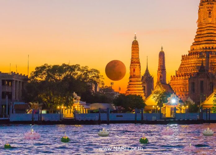 A total lunar eclipse is predicted for the evening of this year’s Loy Krathong festival, making it an extra-special event. This event, according to the National Institute of Astronomy, may be seen at 5 p.m. today from anyplace in the United States.