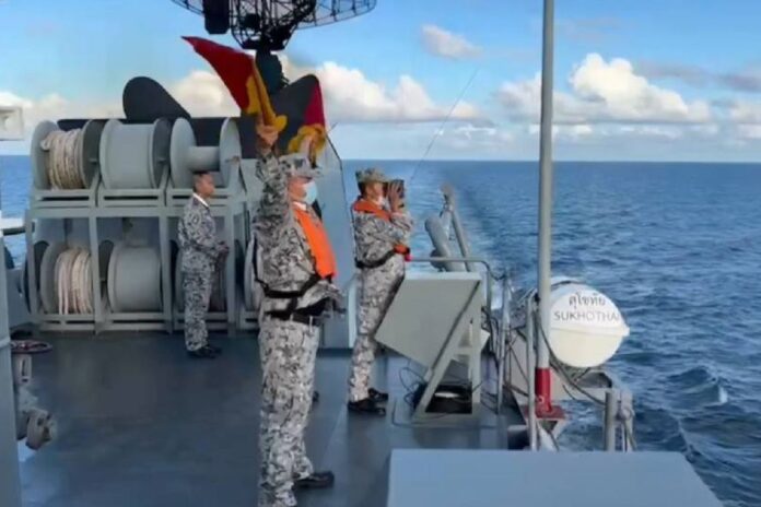 According to the press, the Royal Thai Navy launched the Sukhothai Royal Ship on December 12, 2022. This is a combined effort by the Royal Thai Navy and Vietnamese Thai Navy patrol, captured by the 1st Naval Operations Fleet.