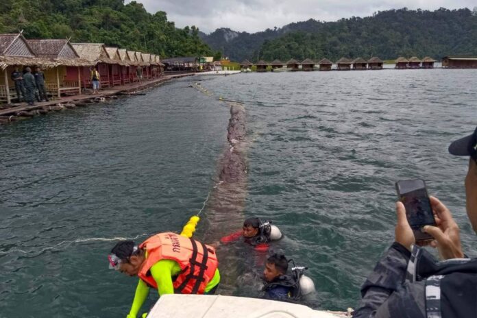 By the scene before Kraisorn Raft Ratchaprapha Dam Ban Chiew Lan Subdistrict Ban Ta Khun District Surat Thani Province to provide assistance to Ban Ta Khun District, the Security Center, Region 11, Surat Thani, Surat Thani Province, Ban Ta Khun Police Station, Ban Ta Khun Hospital, Ban Chiew Lan Subdistrict Administrative Organization, Community Leaders, Charity Faith Foundation, Surat Thani Province, and affiliate networks. Accelerate the search for missing persons. At 11:23 a.m., a body was discovered at a depth of 15 meters in front of Kraisorn Raft. Dam Ratchaprapha Ban Ta Khun Police Station is currently investigating the cause.