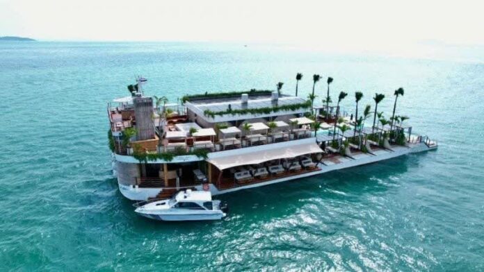 Recently, Capt Krit Khlueapmat, the Deputy Director of Phuket Maritime Enforcement Command Center, led an inspection of Yona Beach Club Phuket, a floating entertainment venue. The inspection included checks on the vessel’s registration, structural integrity, safety features, waste disposal system, potential water pollution risks, and anchor position.