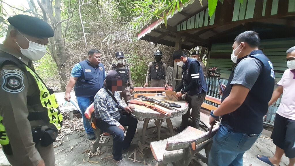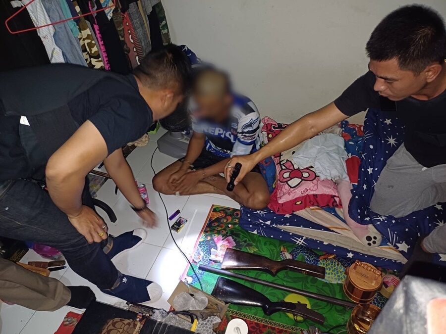 Another significant arrest was made in Udon Thani Province, where Mr. Somyot or M, a 42-year-old suspect, was apprehended at a villa in Huai Keng Subdistrict, Kumphawapi District. He faced charges related to assembling, repairing, changing characteristics, importing, owning, or distributing firearms and ammunition without permission, as well as illegal possession and use of category I narcotics (Yaba). The police seized 8 modified automatic firearms and revolvers, along with various ammunition, drugs, and equipment used to manufacture or modify firearms.