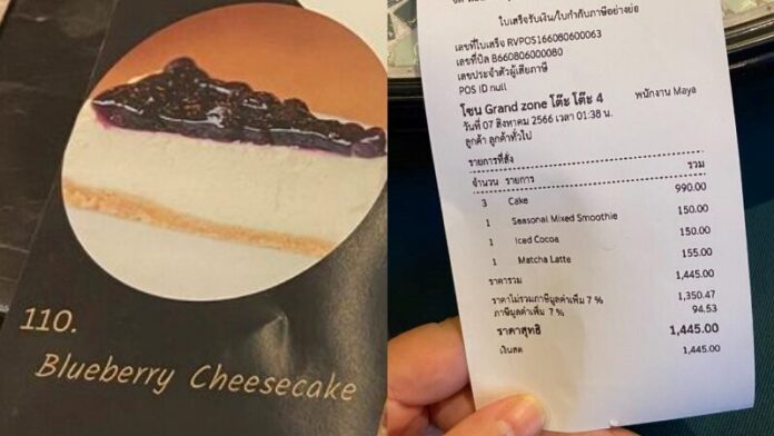The initial post that ignited this wildfire of criticism stated, “Blueberry Cheesecake for 330 Baht per slice – Do you all think it’s too expensive? People in the neighborhood expected it to be around 220 Baht at most. Three of us ordered a slice each and ended up paying a shocking 990 Baht. The drinks, too, lacked flavor in proportion to the price. This isn’t just about finding confections; it’s about encountering bewilderment.”