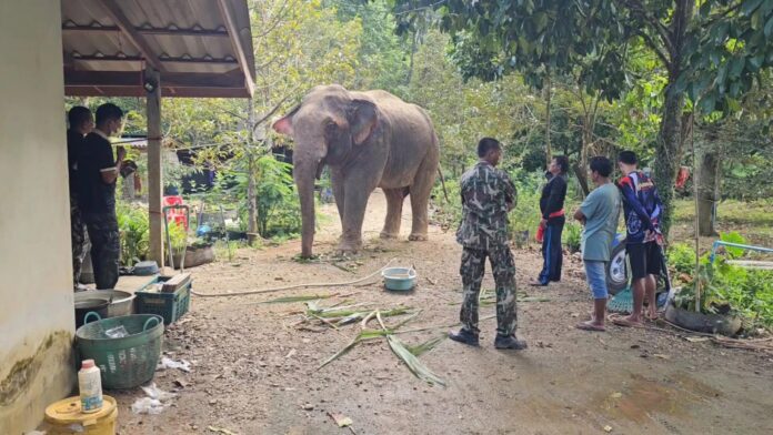 Nakhon Si Thammarat Province, Aug. 19 – In a display of collective dedication, Mr. Charan Duangpaen, the Director of the National Park Division at The Office of Conservation Area 5, took the initiative to boost the morale of park officials from Khlong Klai Watershed Management Unit, Khao Nan National Park, and Krung Ching Waterfall National Park. These officials are currently spearheading the efforts to care for the enigmatic wild elephant known as “Plai Khai Nui.”