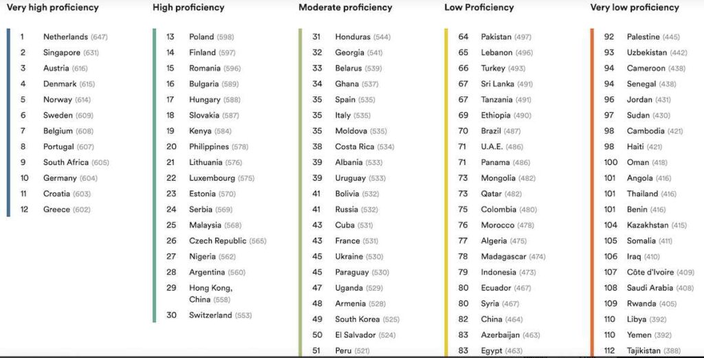 Remarkably, Singapore clinches the second top spot globally in English proficiency, with the Netherlands securing the first position. The Netherlands is credited with a “very high” proficiency level, showcasing the diversity of linguistic skills on the international stage.