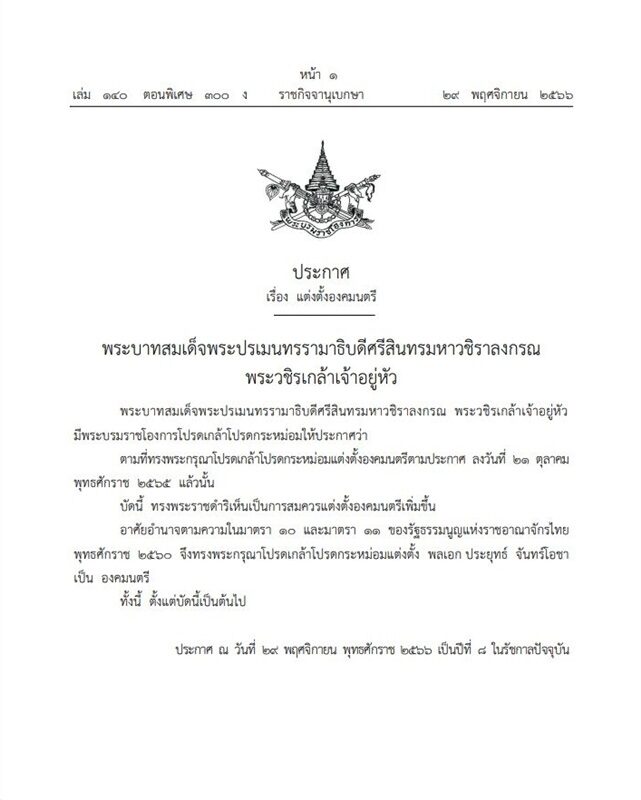 In a significant royal decree published by the Royal Gazette on November 29, 2023, His Majesty King Vajiralongkorn has expanded the Privy Council, appointing General Prayut Chan-o-cha as a Privy Councilor. This development comes as part of ongoing efforts to enhance the advisory body.