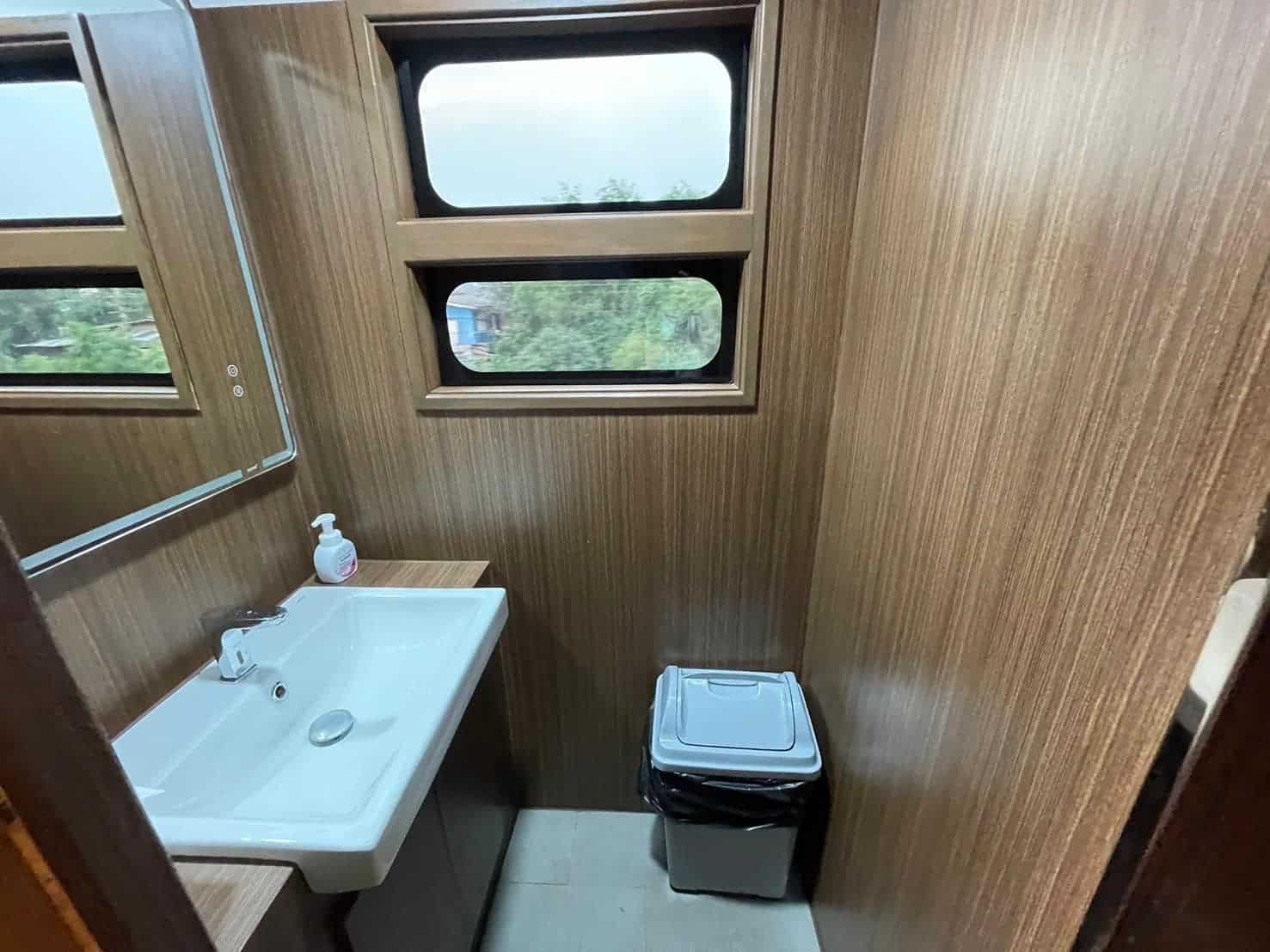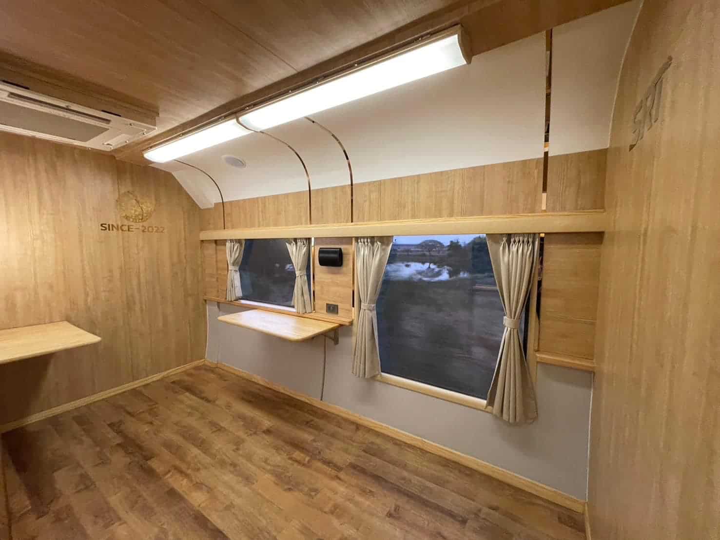 Internally, meticulous attention has been given to detail, with new seating upholstered in plush fabric, adjustable curtains, and LED lighting installed. Main decor elements are crafted from durable cedar wood, with foldable seats and brass-clad handrails, ensuring both elegance and functionality.