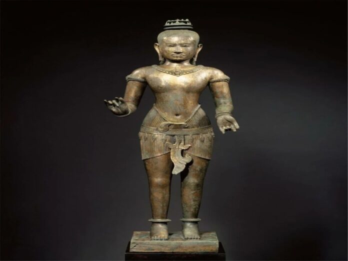 The Metropolitan Museum of Art decided to return the two artefacts following an investigation that confirmed their link to Douglas Latchford, who was charged in 2019 for orchestrating a significant network that trafficked stolen treasures from Southeast Asia. The Golden Boy, believed to have been crafted over 900 years ago, was illicitly taken from Thailand by Latchford in 1975. According to Latchford’s publications, “Khmer Bronzes” and “Khmer Gold,” the statue was discovered in Ban Yang Pongsadao village in the Ta Chong Subdistrict of Buri Ram’s Lahan Sai district.
