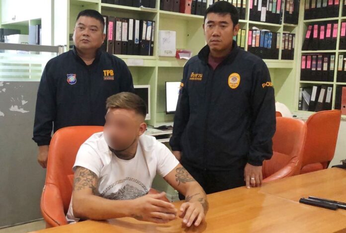 Officials present during the arrest included members of the investigation team and other authorities from the Pattaya City Police Station.