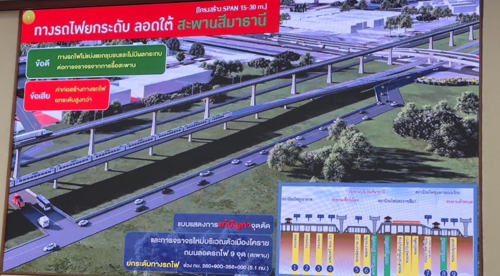 - Elevated Railway Crossing Simathani Bridge: This alternative entails raising the railway to cross the Simathani Bridge, potentially impacting the Bangkok-Nakhon Ratchasima high-speed rail project. This might necessitate relocating Korat Station or elevating the railway through Korat Station and lowering it at Jira Station.