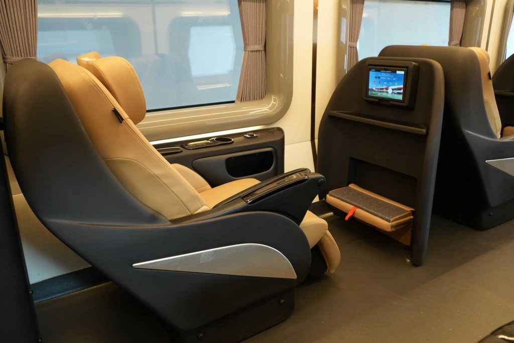 The ‘Beyond Horizon’ marks Thailand’s first domestically produced passenger train under the ‘Thai First’ initiative, promoting local industry support and reducing technology imports by over 44%. Designed entirely by the research team, the train draws inspiration from business-class aircraft cabins and first-class rail experiences, boasting dimensions of 24 meters in length and 2.80 meters in width, with 25 seats, including 8 Super Luxury and 17 Luxury seats.