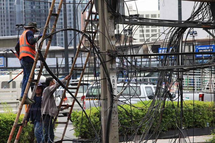 PEA Deputy Governor Prasit Chanprasith highlighted the growing problem of unauthorized cable installations, driven by increasing demand for communication infrastructure. Many entrepreneurs have prioritized rapid business expansion, often exceeding the structural and safety limits of the PEA poles.