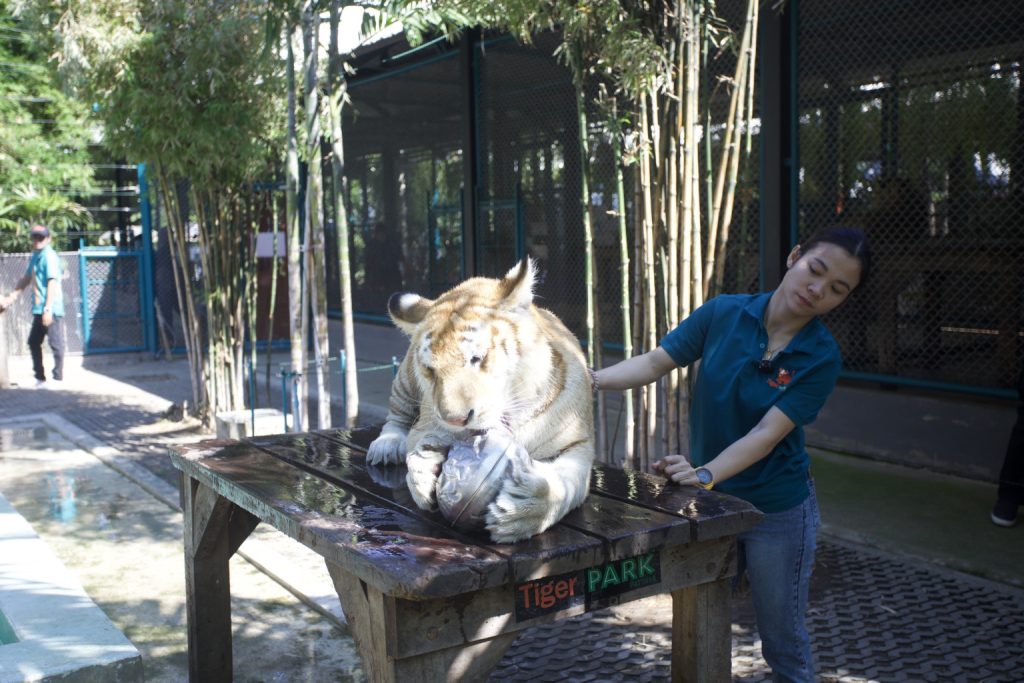 The park, home to nearly 90 Indochinese and Bengal tiger hybrids, is open daily to both Thai and international tourists. Entry fees for Thai visitors start at 120 baht, with additional options for hands-on experiences like feeding or interacting with the tigers.