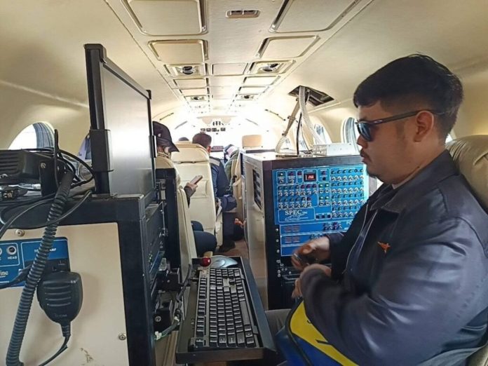 A Super King Air 350 aircraft conducted atmospheric surveillance over Bangkok and neighboring areas between 11:43 and 12:00 at altitudes below 1,500 feet, measuring particle concentrations of 3,500–4,200 particles per cubic centimeter per second near Don Mueang Airport. The data indicated that particulate matter at heights above 3,000 feet is beginning to disperse from the city and surrounding regions.